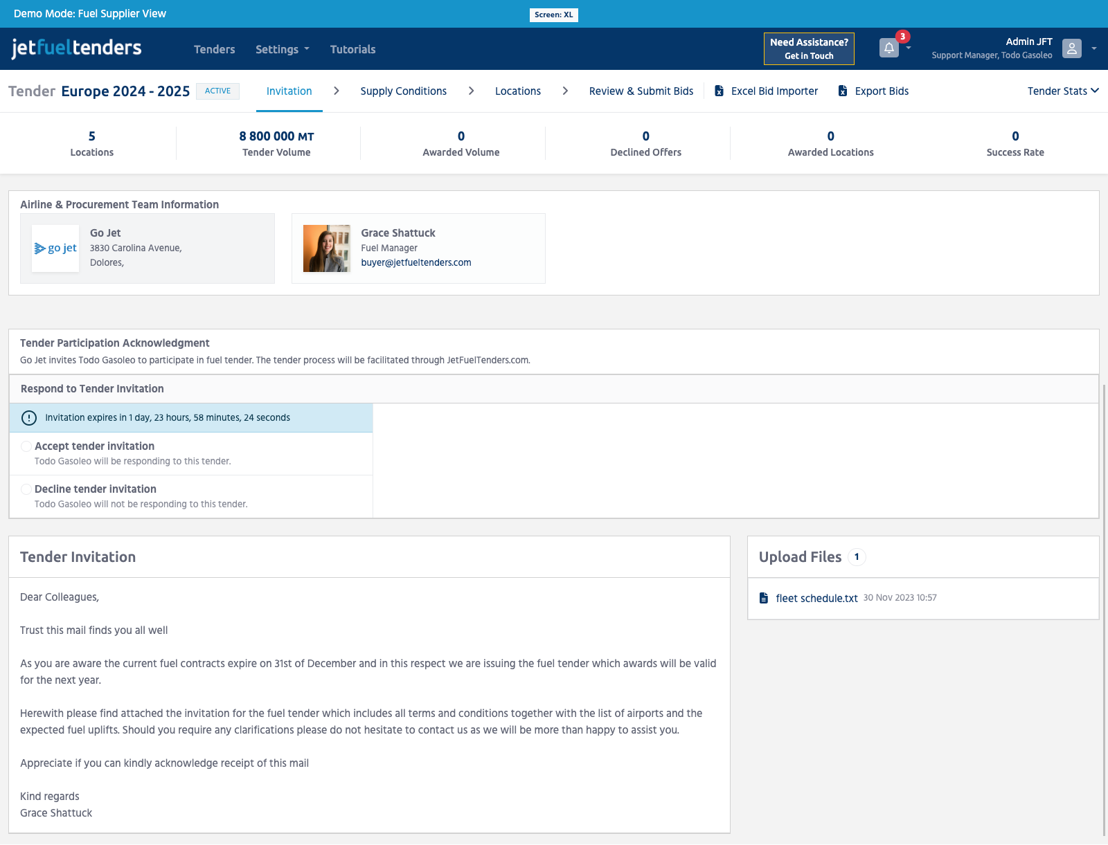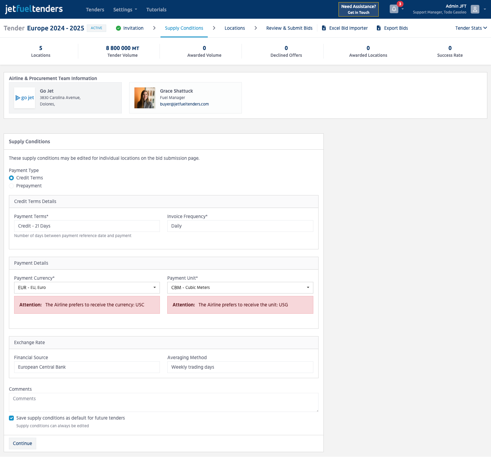 In this section we explain the basic features of the jetfueltenders.com supplier portal.